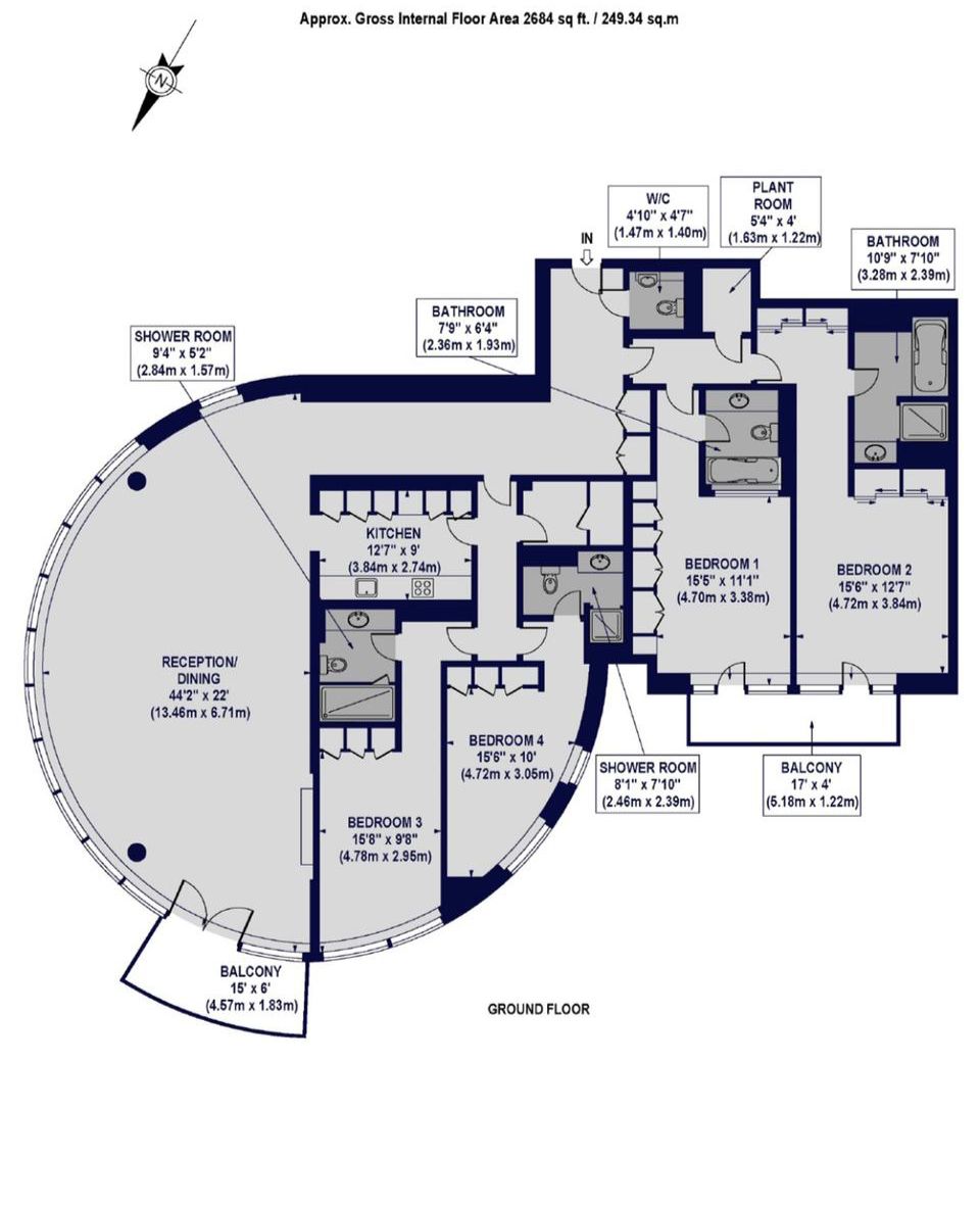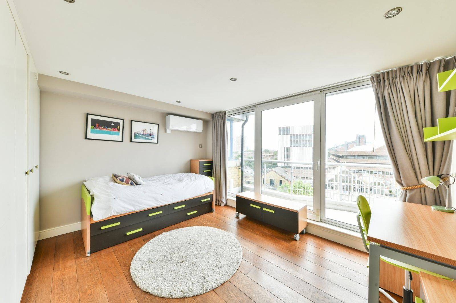 4 good sized double bedrooms all featuring build in storage, three bathrooms, a separate WC and a reception room. Air con & 180 degree river views on all floors, hard wooden flooring throughout, an abundance of light, a 24 hour concierge, a gym.